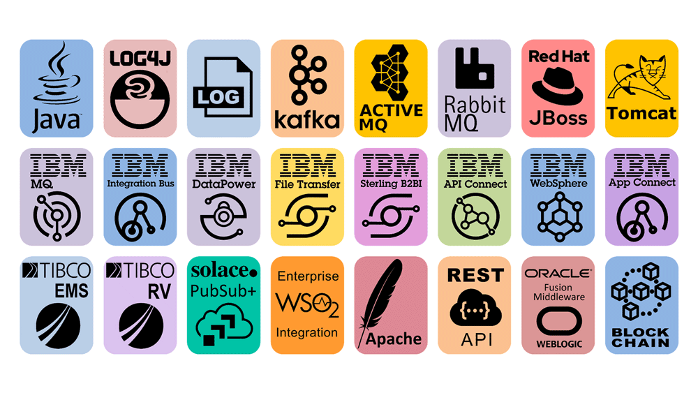 - IBM Cloud Pak for Integration (CP4I) and components – DataPower, MQ, ACE, Apache Kafka® in OpenShift